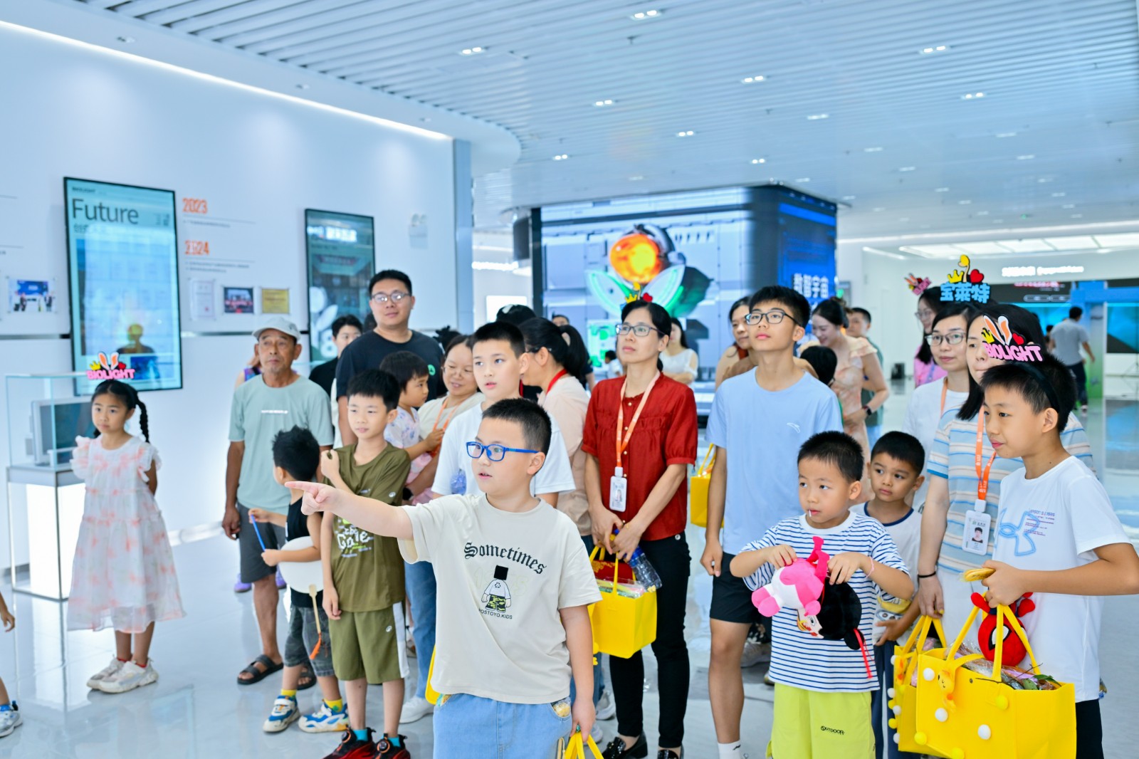 以童趣启智: 兔子姐姐手持 “邓小平南巡”“中国入世”卡通手举牌,将企业史转化为“宝莱兔的时光旅行”。孩子们从LOGO的双手托起生命太阳中读懂守护生命的初心。