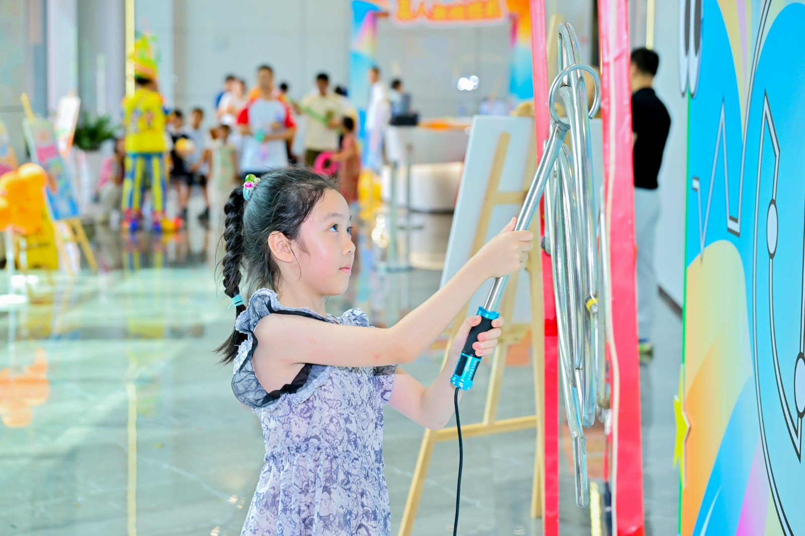 典礼的荣光未散,科技园已切换为温情的共生图景。一楼的亲子游园会上,非遗漆扇DIY的墨色在纱面晕开文化传承,真人娃娃机中的欢声诠释着“聚光向WE来”的深意——“WE”既是员工家庭的小单元,亦是医患同心、产业协力的宏大叙事。孩子们紧握集章卡兑换伴手礼的笑靥,恰似企业温度最轻盈的注脚。
